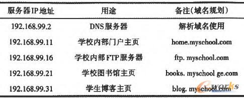 在校園網(wǎng)中,服務(wù)器都放置在中心機房中,中心機房IP地址規(guī)劃為192.168.99.yyy;網(wǎng)關(guān)為192.168.99.1。其中部分DNS相關(guān)服務(wù)器及相關(guān)規(guī)劃如表1所示。
