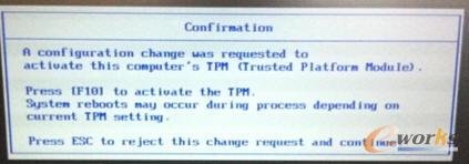 2.當(dāng)再次啟動時,首先系統(tǒng)會提示配置TPM平臺,只需要按F10即可激活TPM。