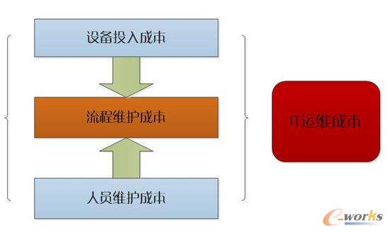 上圖說(shuō)明,設(shè)備投入成本和人員維護(hù)成本很大程度上決定了流程維護(hù)成本,并最終決定著IT運(yùn)維成本。