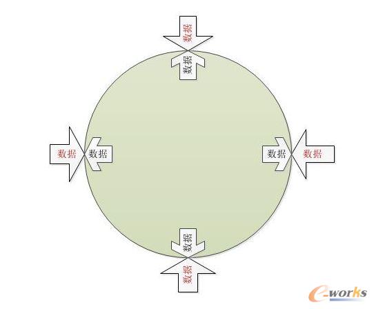 通常情況下,企業(yè)信息化系統(tǒng)運(yùn)行狀態(tài)就上圖一樣,所有信息(雜亂)都從各個(gè)地方被收集到了這個(gè)圓圈(容量不變)里面,信息進(jìn)去后不能主動(dòng)流出來(lái)?赡軙(huì)出現(xiàn)的情況:這個(gè)圓圈容器裝滿后會(huì)爆破或是溢出來(lái);圓圈的運(yùn)行速度會(huì)慢慢降下來(lái),從而導(dǎo)致信息輸入的速度也會(huì)變慢。