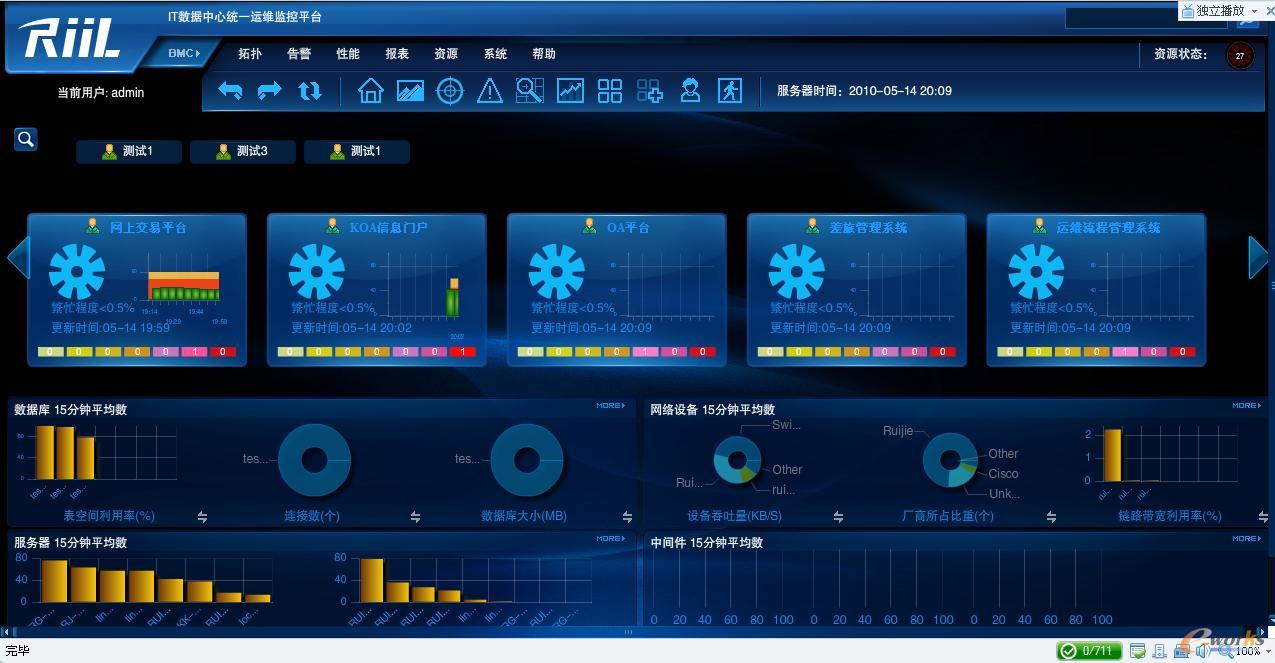 構(gòu)建業(yè)務(wù)系統(tǒng)健康度和繁忙度評(píng)價(jià)體系,通過均衡、科學(xué)的權(quán)重比計(jì)算方式,準(zhǔn)確計(jì)算業(yè)務(wù)系統(tǒng)的健康度和繁忙度指標(biāo),提供業(yè)務(wù)系統(tǒng)健康度、繁忙度監(jiān)控,圖形化動(dòng)態(tài)直觀顯示,方便了解業(yè)務(wù)系統(tǒng)的健康和繁忙情況,提前消除故障隱患,大幅度提高業(yè)務(wù)系統(tǒng)的可用性。