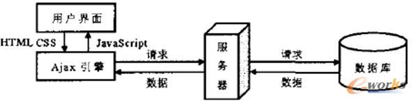 針對(duì)本文第一節(jié)提到的一系列問(wèn)題, Ajax 技術(shù)的應(yīng)用為我們提供了更好的解決方案。Ajax 的工作原理相當(dāng)于在用戶(hù)和服務(wù)器之間加了一個(gè)中間層———Ajax引擎, 使用戶(hù)的請(qǐng)求與服務(wù)器響應(yīng)異步化, 并非所用的數(shù)據(jù)處理都交由服務(wù)器, 部分?jǐn)?shù)據(jù)或校驗(yàn)由Ajax 引擎處理, 當(dāng)需要向服務(wù)器讀數(shù)據(jù)時(shí).才向服務(wù)器發(fā)送請(qǐng)求,如圖1所示。這樣在整個(gè)過(guò)程中,只需要交換少量的數(shù)據(jù)。既減輕了服務(wù)器和網(wǎng)絡(luò)的負(fù)擔(dān),又加快了響應(yīng)速度, 縮短了用戶(hù)的等待時(shí)間。