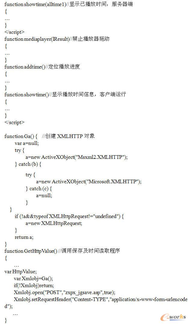在企業(yè)在線培訓(xùn)系統(tǒng)中,用Ajax技術(shù)實(shí)現(xiàn)在線學(xué)習(xí)時(shí)間的讀取與保存,自動(dòng)計(jì)算學(xué)時(shí)學(xué)分,以下為關(guān)鍵代碼: