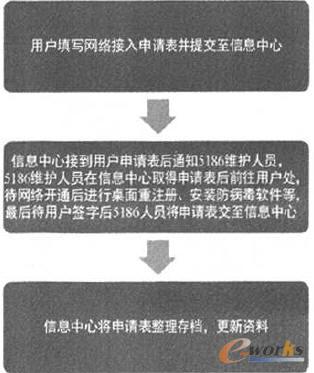3)梳理流程制度:梳理網(wǎng)絡(luò)制度和接入流程,制訂相關(guān)配套表格,明確網(wǎng)絡(luò)接入必須履行相關(guān)手續(xù)。