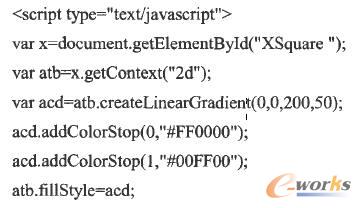 Canvas元素不僅可以定義圖形圖像,同時加上其他腳本可以實現(xiàn)圖形的繪制。如下代碼可以實現(xiàn)一個顏色漸變的方格: