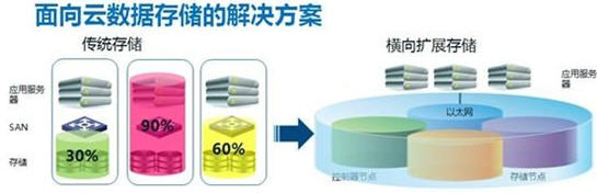這些服務(wù)器集群擁有超大的容量,大家可以看到達(dá)到百P甚至是上到EB的級(jí)別,所以在大數(shù)據(jù)的領(lǐng)域橫向擴(kuò)展的存儲(chǔ),也是未來(lái)的一個(gè)發(fā)展方向。過(guò)去大家都說(shuō)存儲(chǔ)是存儲(chǔ),服務(wù)器是服務(wù)器。到了今天希望通過(guò)融合的架構(gòu),標(biāo)準(zhǔn)的架構(gòu),既可以做存儲(chǔ),又可以做服務(wù)器,唯一的區(qū)別是應(yīng)用模式場(chǎng)景不同,大家采用的配置不同。對(duì)于性能需求大的,配置更高CPU更大的緩存,對(duì)于存儲(chǔ)需求較大的配置更大的硬盤等。