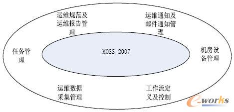 系統(tǒng)總體框架由運(yùn)維-協(xié)作辦公平臺門戶、運(yùn)維-協(xié)作辦公平臺、MOSS工作流引擎、基礎(chǔ)支撐平臺、系統(tǒng)運(yùn)行保障體系、信息安全體系所組成。詳細(xì)見圖1