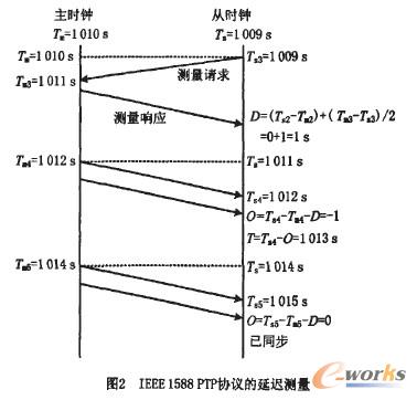 運動控制層設備要進行精確同步操作,必須有嚴格精確的時鐘,因為很多操作是在嚴格的時間表驅動下協(xié)同完成的,而時鐘的時間確定性受制于硬件晶體振蕩器質量和軟件的環(huán)境,很容易受溫度和其他因素的影響。在實際操作中,多數(shù)時鐘每天會產生5 s~15 S的時問偏差。在對時間同步要求高的場合,需要對系統(tǒng)的時鐘偏差進行矯正。目前,網(wǎng)絡上的時間同步技術主要有網(wǎng)絡時間協(xié)議和精確時間協(xié)議兩種。網(wǎng)絡時間協(xié)議的同步精度一般只能達到0.1 ms,當應用對時間精度要求較高時,不能達到要求。為了將以太網(wǎng)用于自動化系統(tǒng)的高精度時間同步,需要采用特殊的方式來滿足應用的時間精度要求。IEEE 1588標準的精確時間協(xié)議(Preci—sion Time Protocol,PTP)就是基于以太網(wǎng)的高精度時間同步的解決方案。