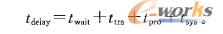 tdelay為延遲時間,指發(fā)送節(jié)點調用發(fā)送處理開始到接收節(jié)點的接收處理完全收到數(shù)據(jù)報文的時間問隔