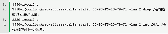 上面的配置根據(jù)MAC地址來允許流量,下面的配置則是根據(jù)MAC地址來拒絕流量。