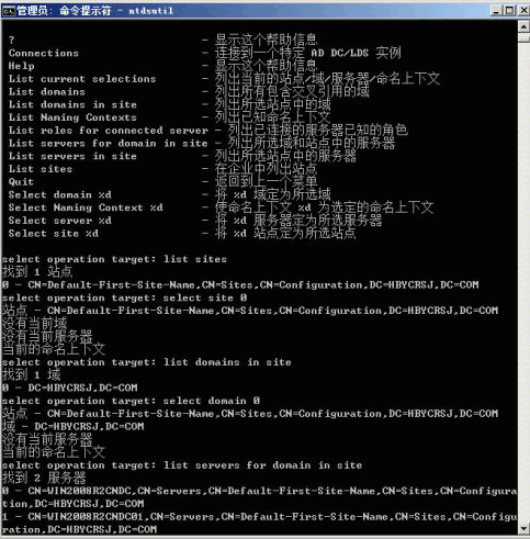 11、select servers for domain in site(列出所選域和站點(diǎn)中的服務(wù)器)