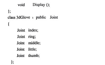 虛擬手的幾何模型設(shè)計(jì)是一種典型的對(duì)象設(shè)計(jì)范例,可以將數(shù)據(jù)以及對(duì)數(shù)據(jù)的操作放在一起處理。對(duì)應(yīng)虛擬手的類(lèi)設(shè)計(jì)如下: