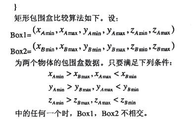 如果上述條件不滿(mǎn)足,則作為第二步:對(duì)被檢測(cè)幾何模型的包圍盒進(jìn)行劃分,再做如上判斷。直到對(duì)包圍盒的劃分到達(dá)某一精度要求時(shí)候,確認(rèn)是否發(fā)生碰撞。