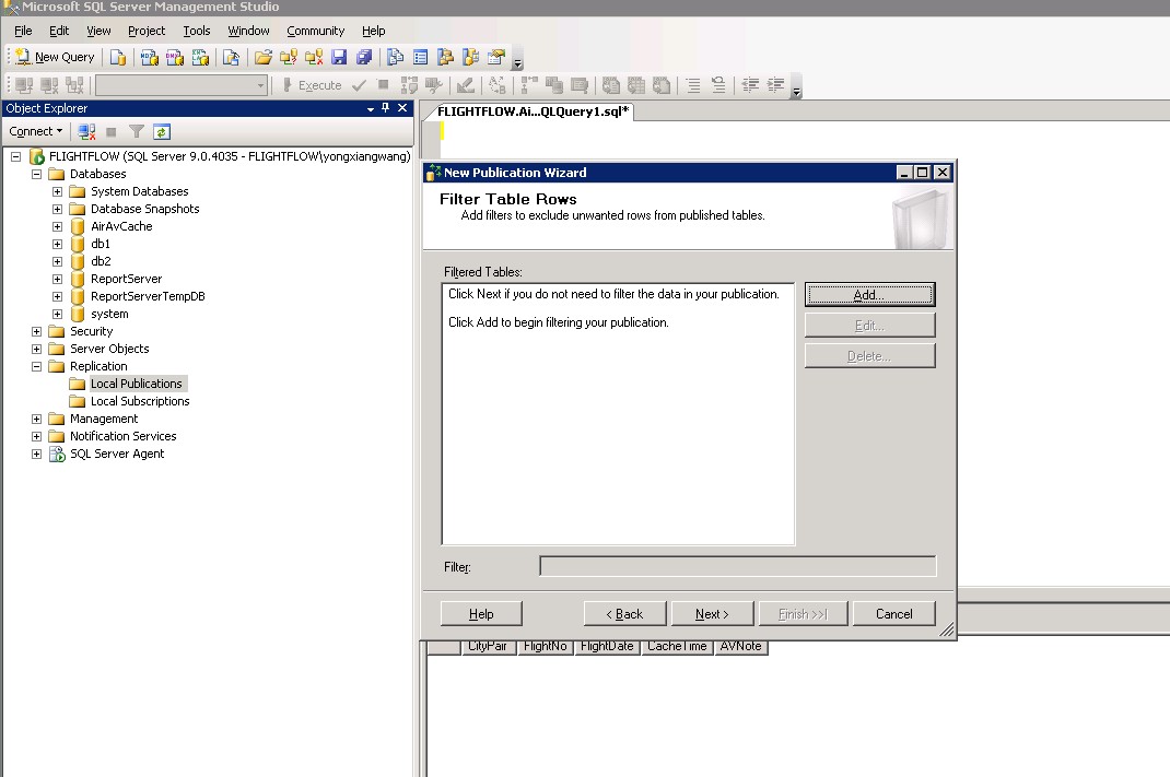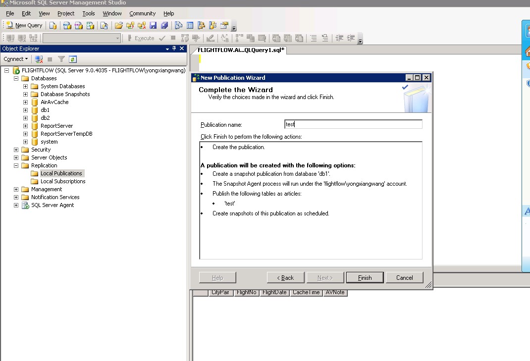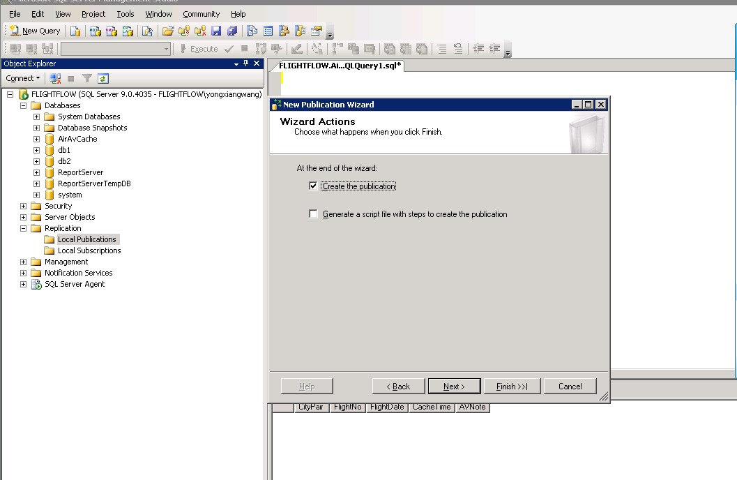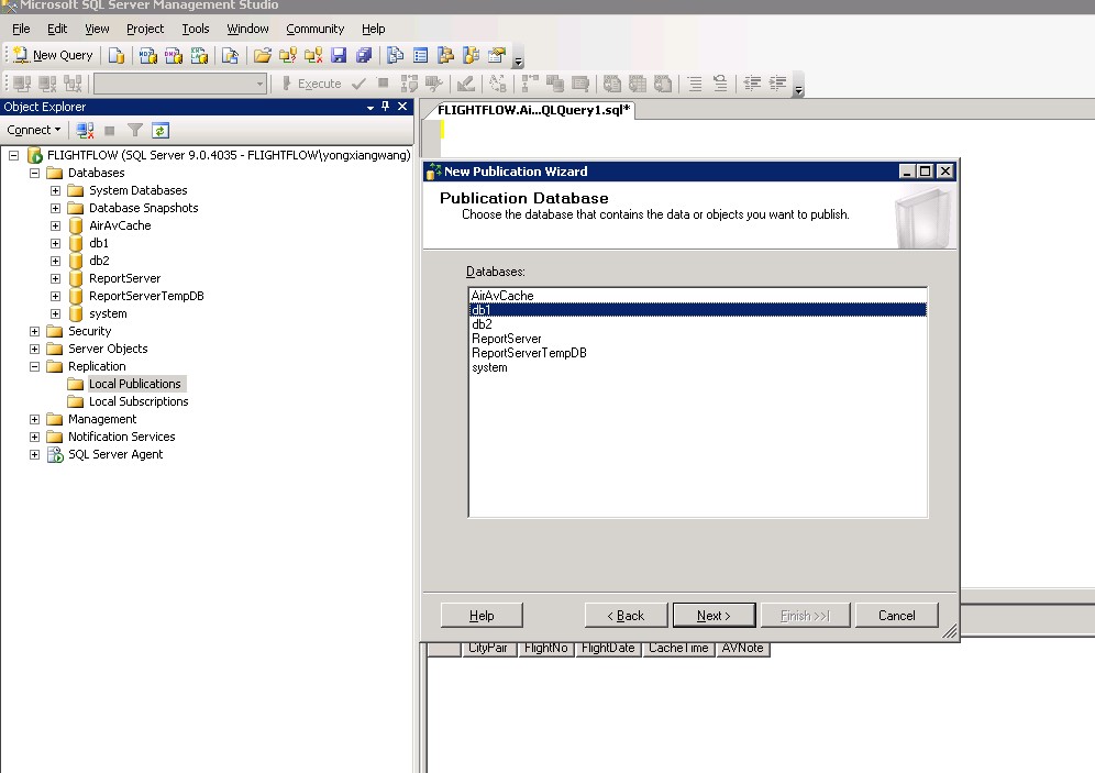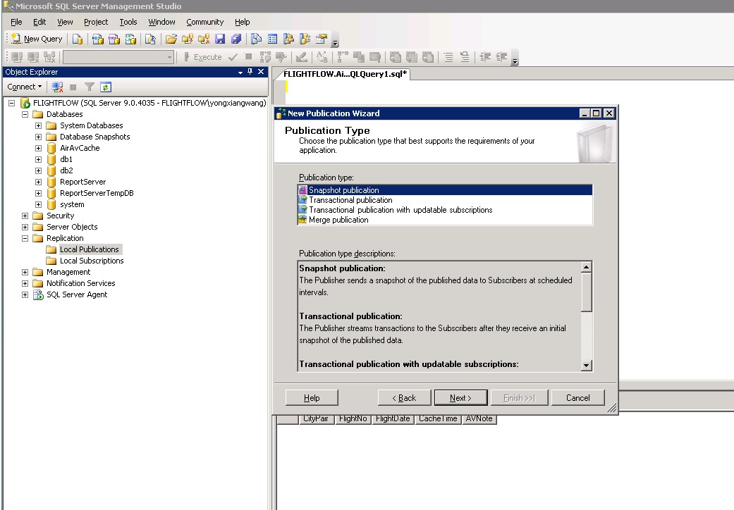 3.創(chuàng)建一個(gè)發(fā)布。即將需要的數(shù)據(jù)庫(kù)及對(duì)象發(fā)布出來(lái)。