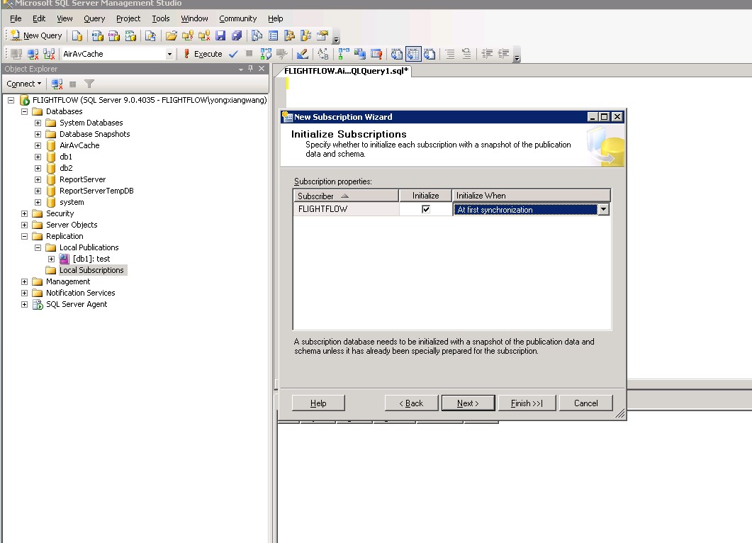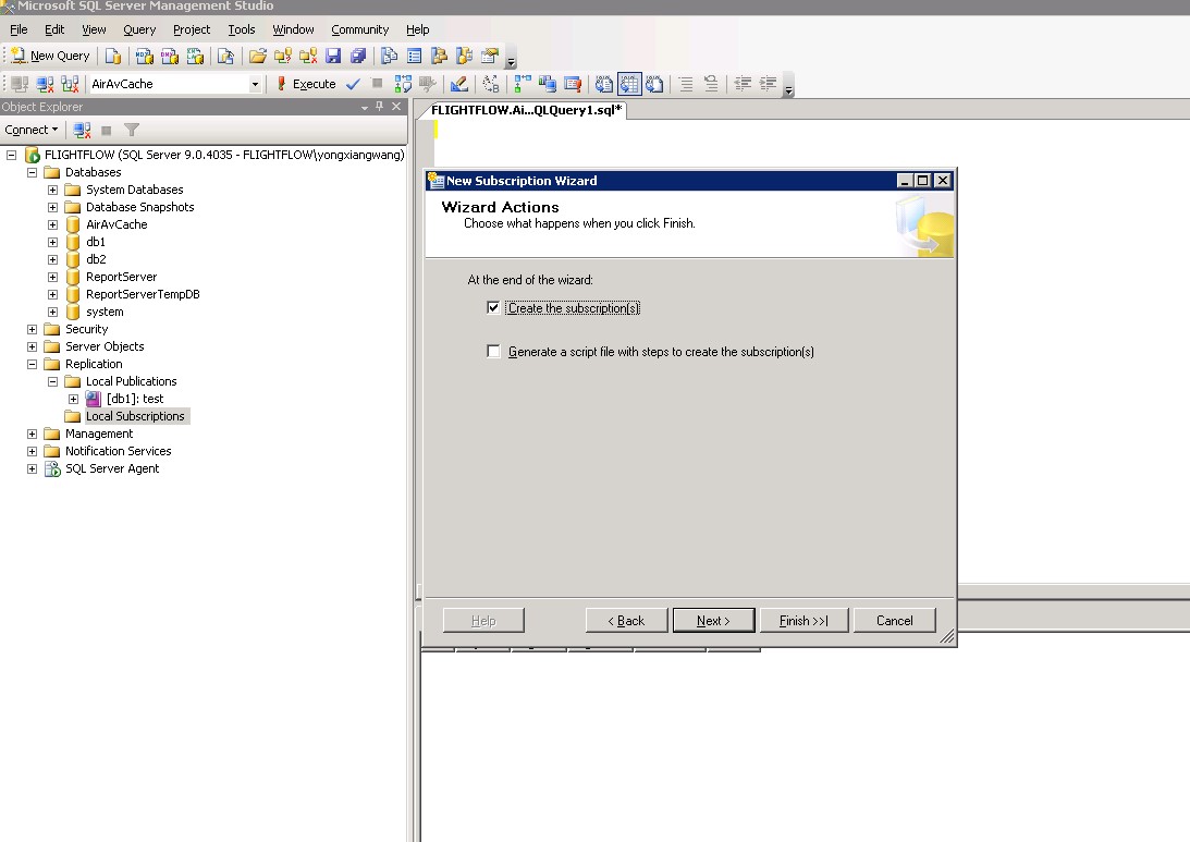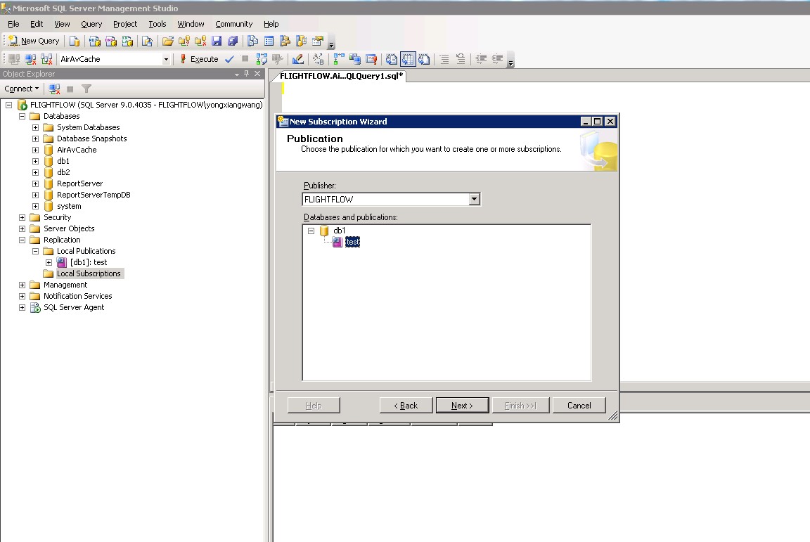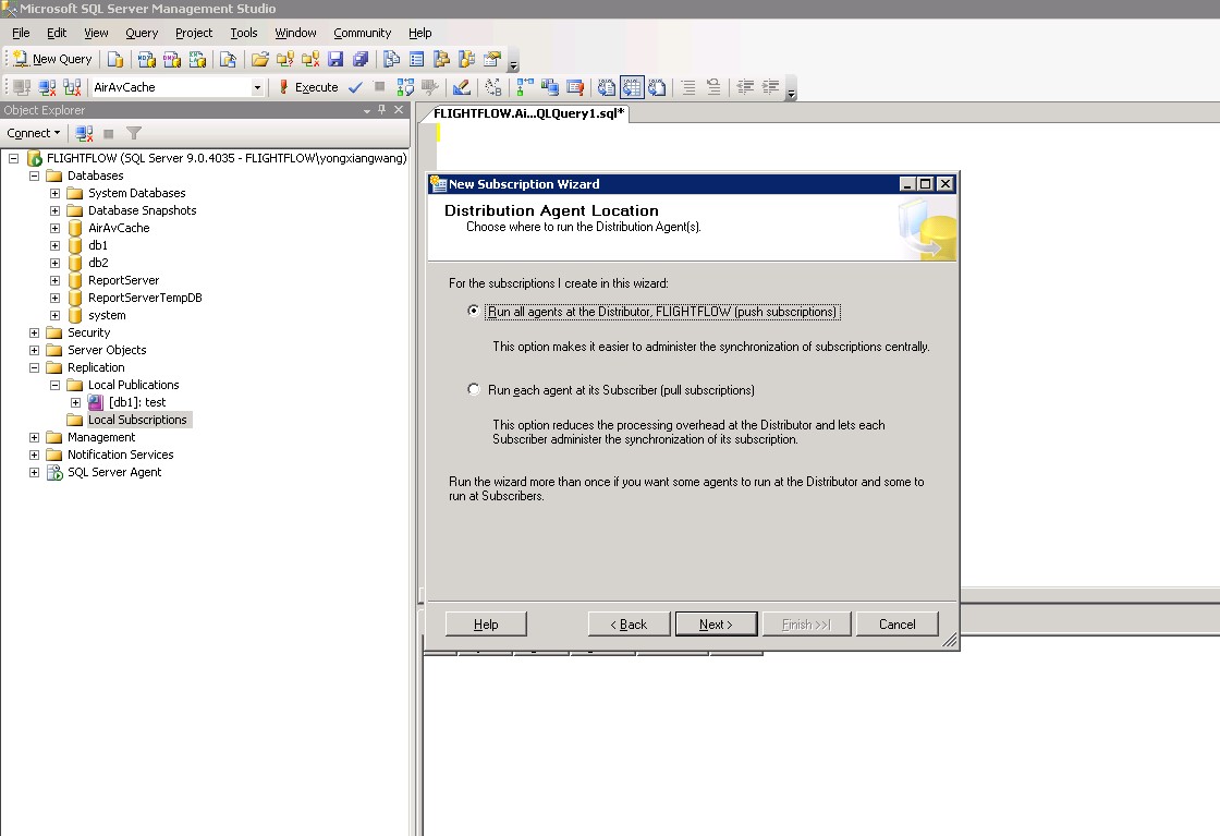 新建訂閱,選擇發(fā)布服務(wù)器和發(fā)布數(shù)據(jù)庫(kù)
