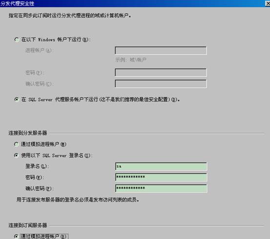 連接到發(fā)布服務(wù)器選中"使用以下SQL Server登錄名"