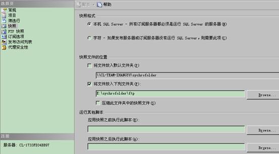 (2)選中發(fā)布數(shù)據(jù)庫-發(fā)布類型選擇快照(快照地址選擇共享文件夾sychrofolder)-選中要發(fā)布的數(shù)據(jù)表-指定運(yùn)行快照代理時(shí)間