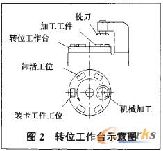 在機械制造過程中,輔助時間是影響工時定額的一個重要因素,應盡可能地使輔助時間與機械加工時間重合。比如我廠的上旁承加工工藝。如圖2所示,采用轉位工作臺,機床可連續(xù)進行加工,工人可同時進行工件的裝卸。