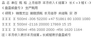 各包裝車間每月在月底出具庫存報表時,需知道每種貨物:結(jié)存(指已結(jié)算)、未結(jié)賬(未結(jié)算)、實(shí)存(結(jié)存數(shù)+未結(jié)賬數(shù)),見圖: