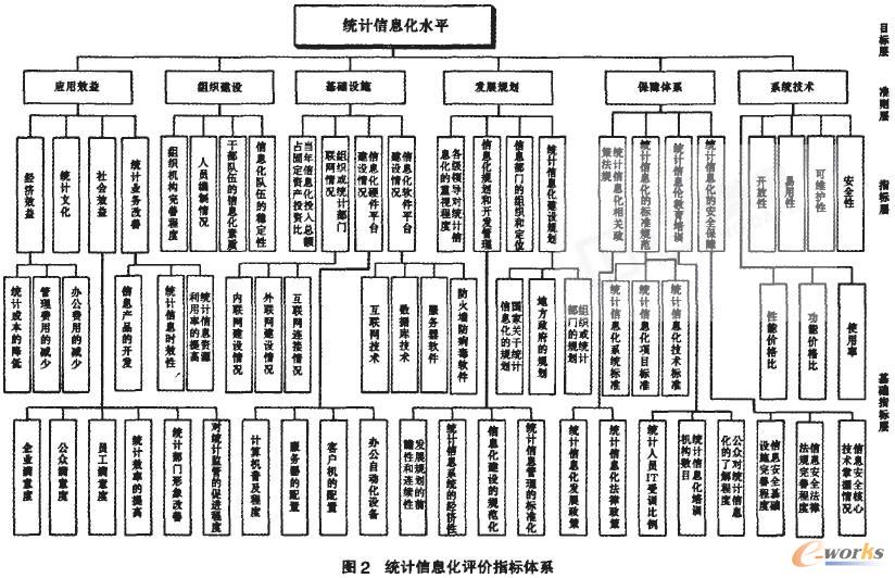 統(tǒng)計信息化是一項系統(tǒng)工程,是統(tǒng)計行業(yè)應用信息技術及信息產品,促使統(tǒng)計業(yè)務變革,改進統(tǒng)計方法的過程。其建設過程實際上也是—個不斷評價和完善的過程。對統(tǒng)計信息化建設的評價不僅是一個檢驗的體系。更重要的是一個建設指導的體系。通過對統(tǒng)計信息化的評價,一方面可以徹底檢查統(tǒng)計信息化的現(xiàn)狀、所處階段,并與統(tǒng)計信息化的既定目標對比,發(fā)現(xiàn)實施過程中存在的問題.找出差距;另一方面?偨Y經驗和教訓,并結合各地區(qū)、各部門的現(xiàn)狀。根據(jù)新環(huán)境和新業(yè)務而調整.對統(tǒng)計業(yè)務流程進行再造。改善統(tǒng)計業(yè)務管理模式。關于信息化建設水平評價的一般模型,如諾蘭模型、軟件成熟度模型和技術—信息卓越度模型都在一定程度上描述了信息化水平,因此都可以成為統(tǒng)計信息化水平測評指標體系的參考模型明。