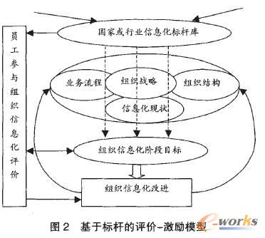 基于標桿的評價一激勵模型的核心內(nèi)容是對組織的信息化目標進行標桿管理和讓員工參與信息化水平評價。