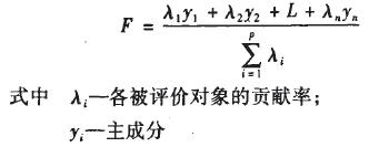 主成分分析的實(shí)質(zhì)是用少數(shù)幾個(gè)不相關(guān)的指標(biāo)來代替原來為數(shù)較多的、彼此有一定關(guān)系的指標(biāo),然而這幾個(gè)少數(shù)的指標(biāo)能夠盡可能多地反映原來的信息量。其可取之處在于通過一定的數(shù)學(xué)變換來實(shí)現(xiàn)定性指標(biāo)的定量化,同時(shí)避免了信息重復(fù),且權(quán)數(shù)是在指標(biāo)合成過程中自動(dòng)生成的,避免了人為確定權(quán)數(shù)時(shí)主觀因素的影響。在主成分分析的綜合評(píng)價(jià)上,目前我國(guó)學(xué)者的通常做法是既重視第一主成分,也顧及其他主成分所起的作用。在郝曉玲和孫強(qiáng)所編著的《信息化績(jī)效評(píng)價(jià)框架、實(shí)施與案例分析》一書中提出了一種改進(jìn)方法,即先按累計(jì)方差貢獻(xiàn)率不低于闕值的原則確定前k個(gè)主成分,然后以選擇的每個(gè)主成分各自的方差貢獻(xiàn)率為權(quán)數(shù),將它們線型加權(quán)求和得綜合評(píng)價(jià)值指標(biāo)F。綜合評(píng)價(jià)值F的計(jì)算公式為