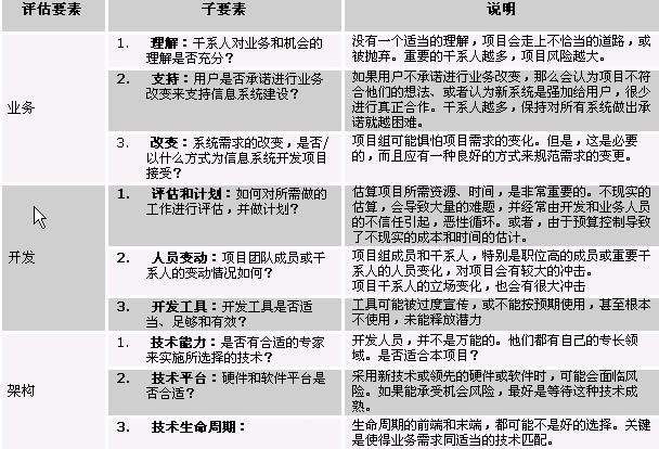表1:某IT開發(fā)項目的評估要素