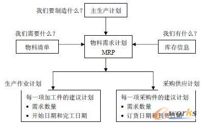 物料需求計劃(MRP-Material Requirement Planning)的對象:是非獨立需求類型的物料。一個產(chǎn)品可能有成百上千中非獨立需求型的物料,各自的生產(chǎn)和采購提前期不同,需用日期也不同。MRP就是編排好它們的生產(chǎn)和采購計劃,使其在需要的日期能夠配備齊全,滿足生產(chǎn)的需求,而在不需用的日期內(nèi)又不要過量積壓,要做到這一點,物料的計劃參數(shù)要求就必須準(zhǔn)確,特別是提前期,按物料的提前期,從需用日期算起倒排計劃,確定訂單下達日期和數(shù)量,生產(chǎn)和采購部門清楚每種物料的需求先后順序,從而做到有條不紊的安排生產(chǎn)和采購計劃。圖2是MRP的邏輯流程圖。