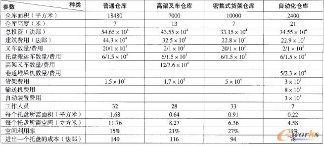 下面還可以參考法國計(jì)算的不同倉庫形式的比較(見表4)。