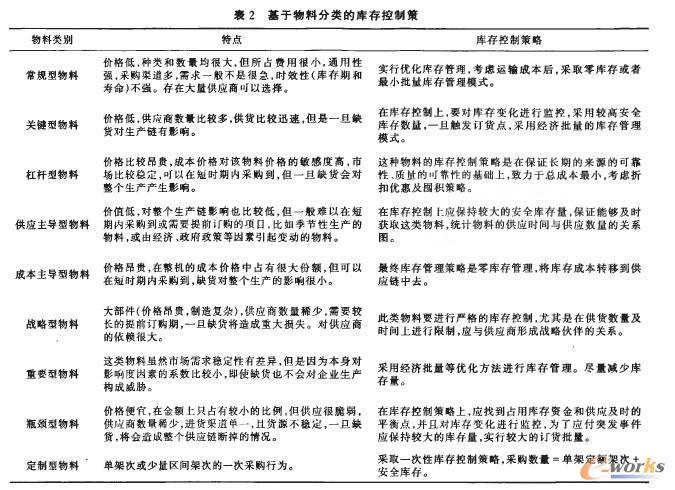 民機物料應(yīng)用庫存控制策略后,庫存管理人員的主要精力與工作只要集中在管理戰(zhàn)略型物料,及需要進行庫存監(jiān)控的關(guān)鍵型物料和瓶頸型物料上,采購人員需注意杠桿型物料和供應(yīng)主導型物料的市場供應(yīng)狀況及趨勢,每一種物料都有明確的管理需求,而對于數(shù)量眾多,價格低廉,供應(yīng)穩(wěn)定的物料則由系統(tǒng)進行管理與判斷,大大減少庫存管理的工作量,規(guī)范庫存控制的方法,優(yōu)化庫存結(jié)構(gòu)。針對民機的物料分類,不同的物料采用不同的庫存控制策略,見表2。