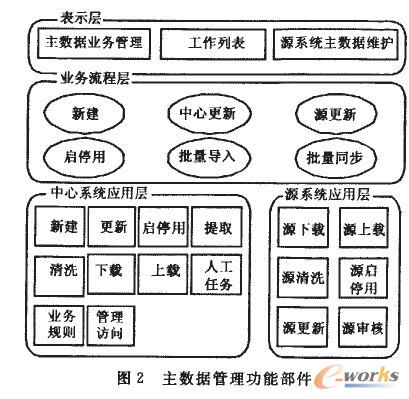 如圖2所示,主數(shù)據(jù)管理組件劃分為表示層組件、業(yè)務(wù)流程組件、應(yīng)用層組件等3層,下層依次為上層提供服務(wù).