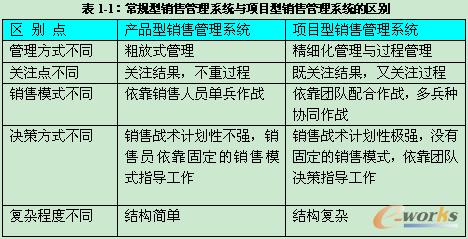 產(chǎn)品型銷(xiāo)售管理系統(tǒng)與項(xiàng)目型銷(xiāo)售管理系統(tǒng)在很多方面都存在著本質(zhì)上的區(qū)別,以產(chǎn)品型銷(xiāo)售管理系統(tǒng)去管理項(xiàng)目型銷(xiāo)售,其結(jié)果必然是南轅北轍。