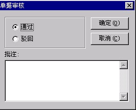 2. 審核:選擇一新單,然后點擊工具欄中的 或者菜單[業(yè)務(wù)\審核],系統(tǒng)彈出審核對話框。選擇‘通過’或‘駁回’,也可輸入批注,之后,按確定。
