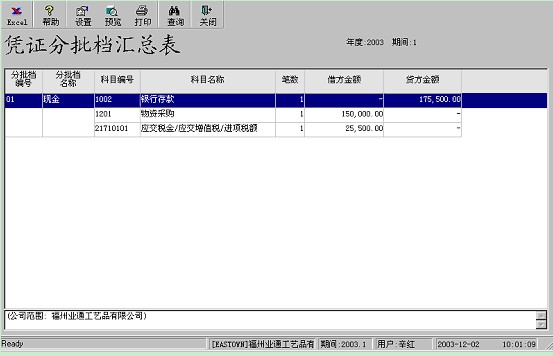 憑證分批檔匯總表匯總的輸出方式有兩種:另存為EXECL文檔、打印。請(qǐng)參見《單據(jù)打印設(shè)置手冊(cè)》。