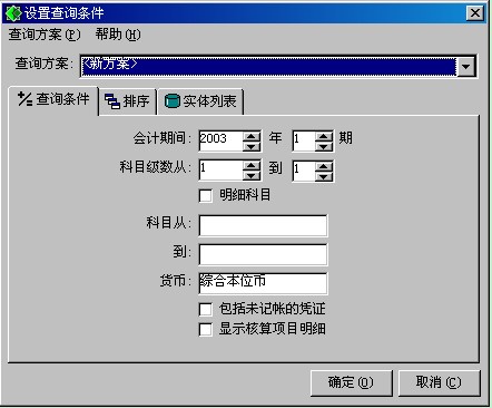 選擇要查詢的試算平衡表的會計(jì)科目級數(shù),系統(tǒng)默認(rèn)為一級科目。用戶可以維護(hù)。 |