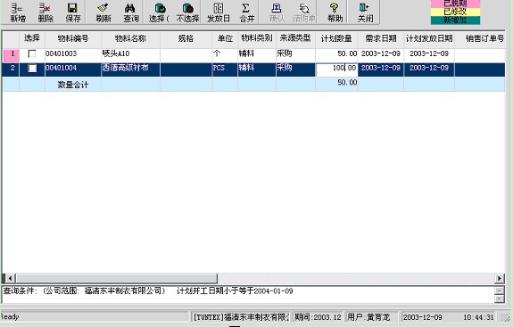 4、 如果有物料編號(hào)相同的記錄,可以點(diǎn)“計(jì)劃合并”按鈕對(duì)計(jì)劃分錄進(jìn)行合并。