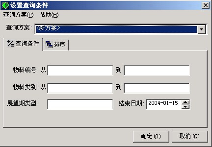 查詢方式有三種:定位、自定義查詢、查詢。查詢的查詢條件中列有:物料編號、物料類別、展望期類型等。您能對介面上的條件進行任意組合。查詢介面如圖4-14-1。對于自定義的查詢條件具體設(shè)定請參見第四章附錄一“公共操作”。