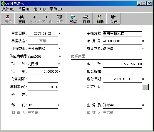 如果系統(tǒng)選定了付款期限,應(yīng)付日期會(huì)自動(dòng)給出。否則需要用戶手工錄入 |