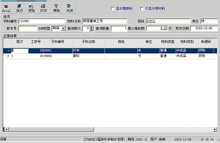 BOM類(lèi)型,批量數(shù)量等參數(shù)后,執(zhí)行查詢操作即可得到資料。具體步驟如下: