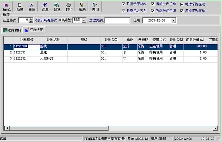 選擇要匯總計(jì)算的物料編號(hào)及匯總數(shù)量,匯總計(jì)算參數(shù)后,執(zhí)行匯總功能系統(tǒng)將按要求