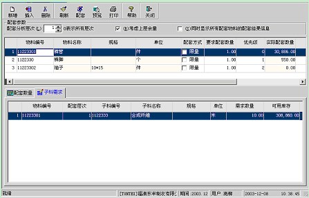 配套分析時(shí)是否按要求配套數(shù)量限制最大的配套數(shù);如果要求限量,當(dāng)可配套數(shù)量超過要求配套數(shù)量時(shí)按要求配套數(shù)量配套,多余庫存配套其它物料; |