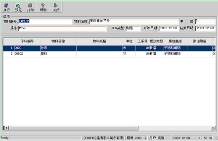 BOM類型及操作時(shí)間段;單擊“執(zhí)行”按鈕系統(tǒng)將檢索出結(jié)束時(shí)間前的所有新增﹑刪除歷史和時(shí)間段內(nèi)的修改歷史。