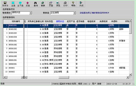 1、 按 “查詢”按鈕或選擇相應菜單項,設置條件,過濾出欲替換的物料的大致范圍;