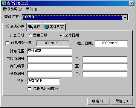 系統(tǒng)默認的計息期間是從務業(yè)的應付日期開始到載止日期止;計息范圍不包括已銷部分,只取賬面余額計息。