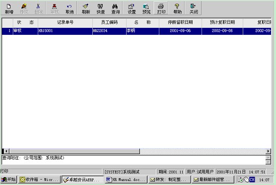 3、審核未通過: 指雖然審核但未獲通過的員工停薪留職單據(jù)。對此類單據(jù)不能修