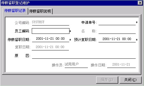 錄入停薪留職說明。