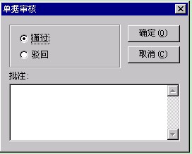 2. 審核:選擇一新單,然后點(diǎn)擊工具欄中的 或者菜單[業(yè)務(wù)\審核],系統(tǒng)彈出審核對(duì)話框。選擇‘通過(guò)’或‘駁回’,也可輸入批注,之后,按確定。