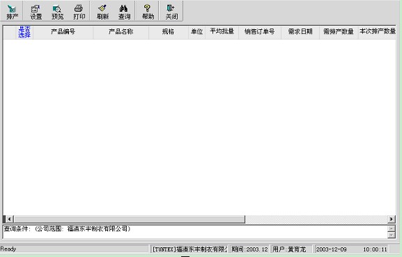 3、 用光標(biāo)選中相應(yīng)的訂單,在本次排產(chǎn)數(shù)量及需求日期欄輸入相應(yīng)數(shù)據(jù);在是否選擇欄打勾;點“排產(chǎn)”按鈕,則系統(tǒng)將選中的訂單列入主生產(chǎn)計劃。