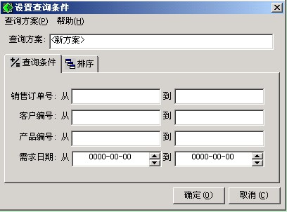 銷售訂單號、客戶編號、產(chǎn)品編號、需求日期。您能對介面上的條件進(jìn)行任意組合,具體設(shè)定請參見第四章附錄一“公共操作”。
