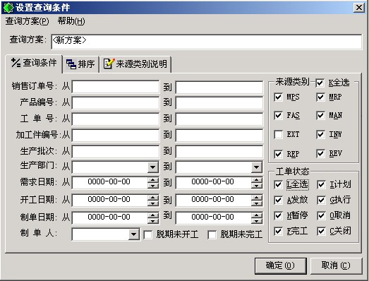 2、 點(diǎn)擊“查詢”按鈕,彈出設(shè)置查詢條件視窗,設(shè)置查詢條件,可查詢需進(jìn)行膠件工單綜合管理的資訊。